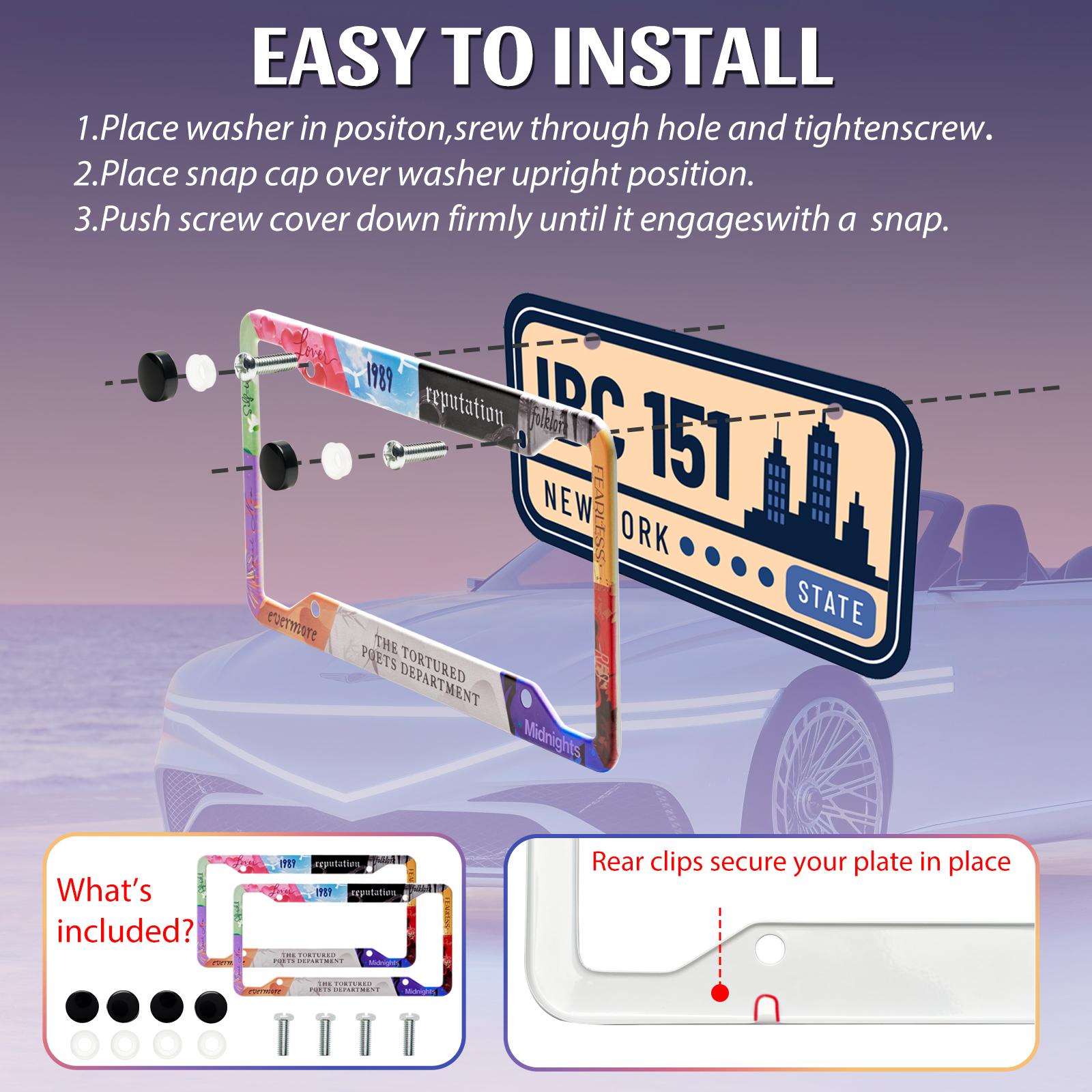 License Plate Frame for Car, Car Plate Frame with Screws for Standard Us Canada License Plate Holder, Stainless Steel Car Accessories 12x6 Inch